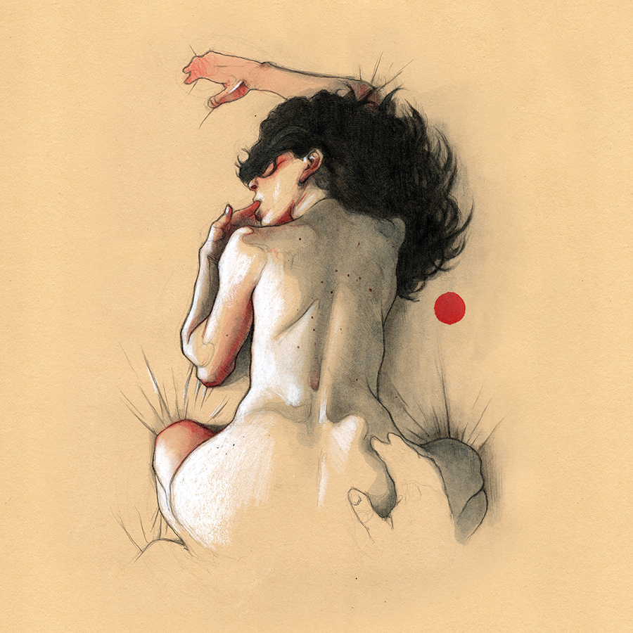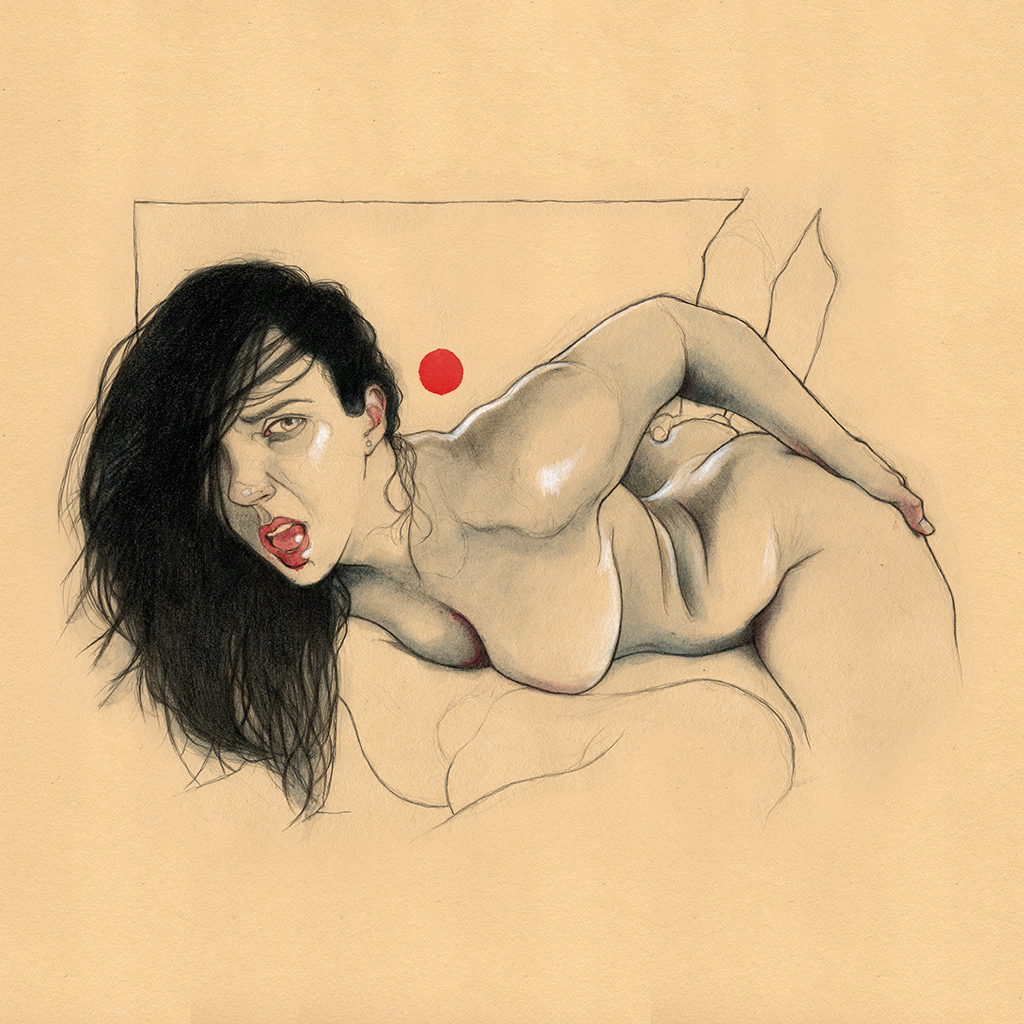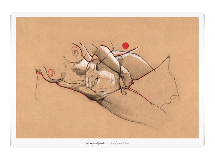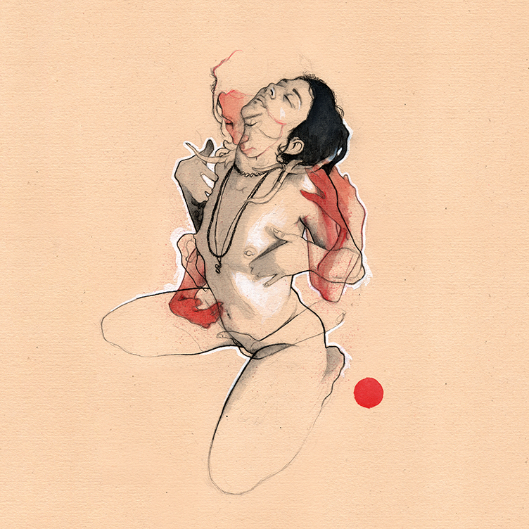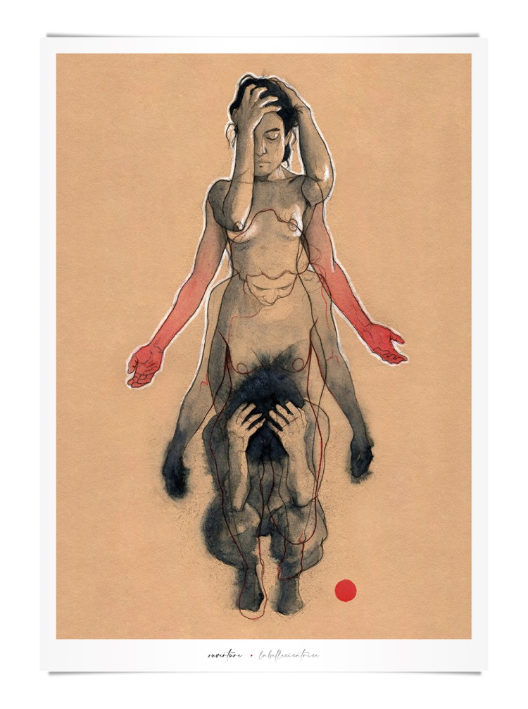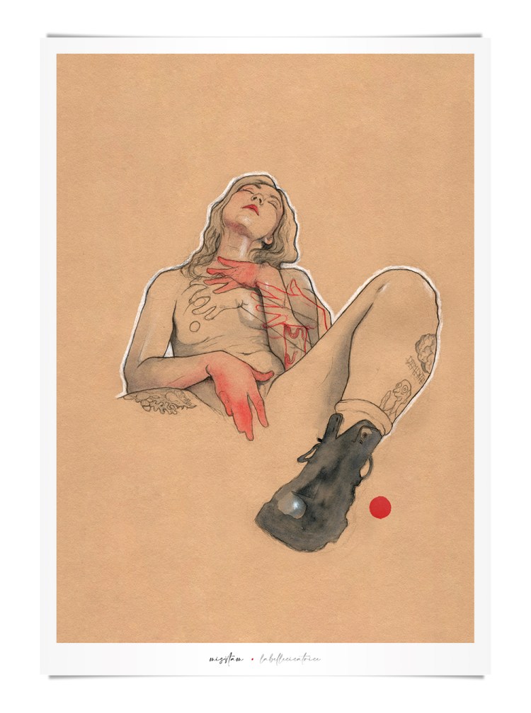 Movement, color and eroticism are liquid. Movement in multiple poses, arms and hands running across the skin, invisible dances. Color that dilutes in the mother liquid and ends in the rectangular paper, the skin of art. Eroticism that creates liquid, flows that embrace and transport pleasure. A triangle of elements that closes the circle of liquidity.