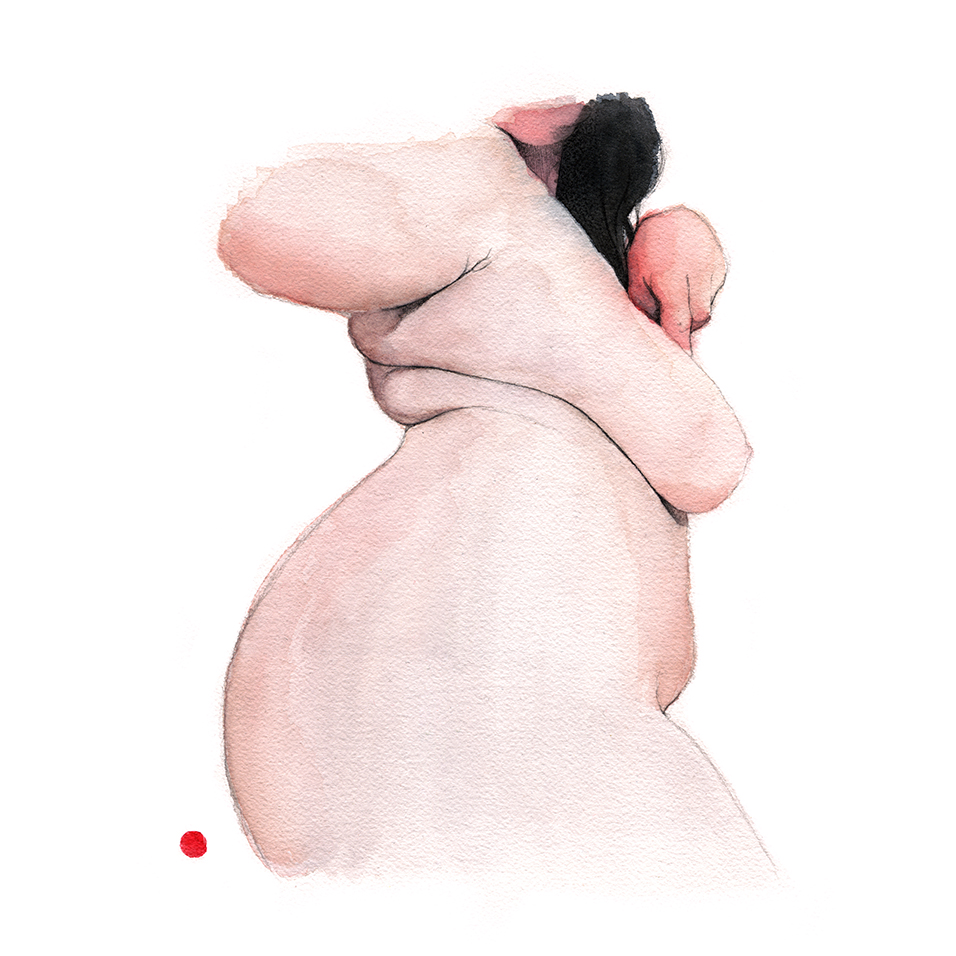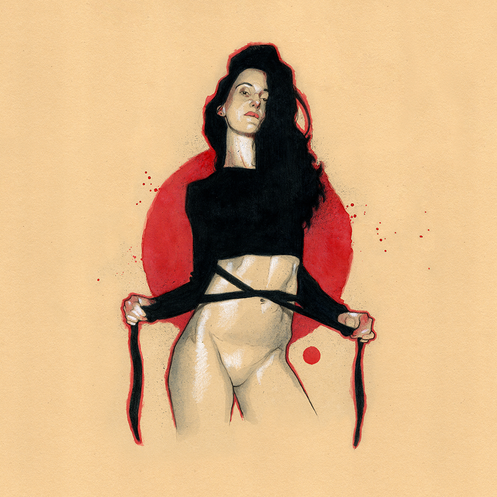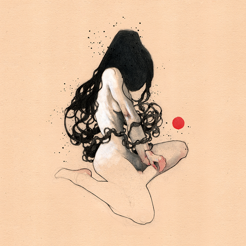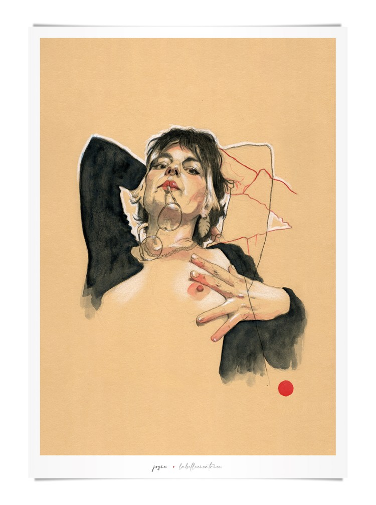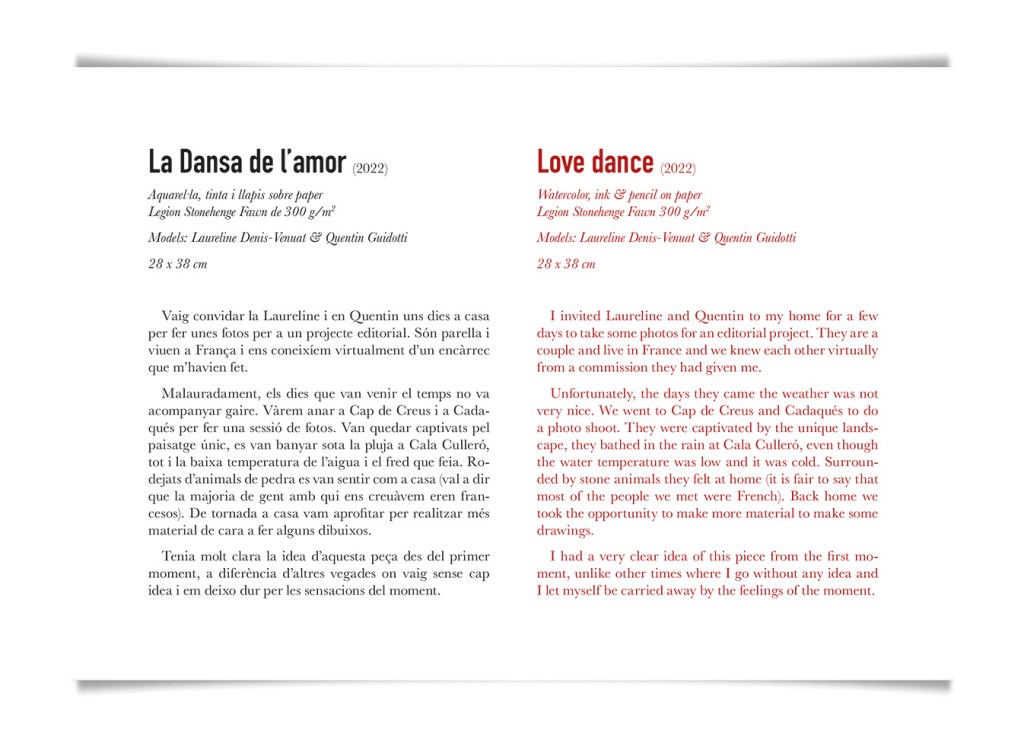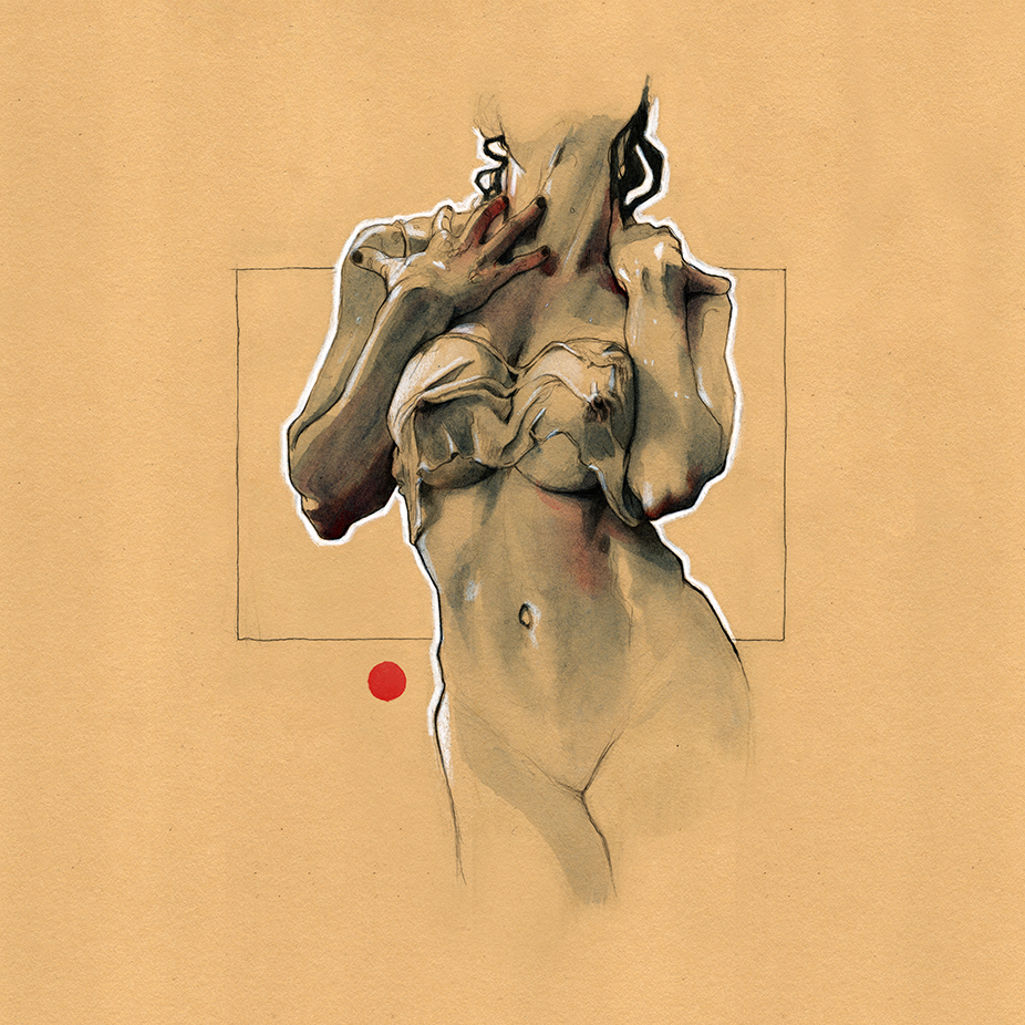 Movement, color and eroticism are liquid. Movement in multiple poses, arms and hands running across the skin, invisible dances. Color that dilutes in the mother liquid and ends in the rectangular paper, the skin of art. Eroticism that creates liquid, flows that embrace and transport pleasure. A triangle of elements that closes the circle of liquidity.