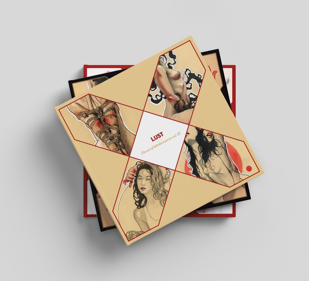 We begin this journey with pleasure, lustful, the origin of everything. Shibari, lustration, is another ritual, in this case of submission. The shine on the skin, lustrous, and the dance of the hair, illustrous, are two very powerful expressive resources. Sometimes, illustration, art has been at the service of other projects. The multipose, cluster, deserved a chapter of its own. And finally, as if it they were a sag wagon, the last two, wanderlust and flustrated, which are based on the origin of the references: from afar, for the first one; and from my own, for the second.